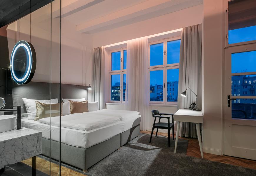 . חדר אמבטיה עם אמבטיה עם מערכת בועות או מקלחון